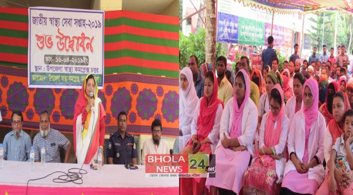 আদিল হোসেন তপু,ভোলা নিউজ২৪ডটনেট ॥সেবা নিন, সুস্থ্য থাকুন এই প্রতিপাদ্য বিষয় সামনে রেখে ভোলায় ‘জাতীয় স্বাস্থ্য সেবা সপ্তাহ-২০১৯’ এর আনুষ্ঠানিক ভাবে উদ্বোধন করা হয়েছে। মঙ্গলবার দুপুরে ভোলা জেলা প্রশাসক কার্যলয়ের সামনে উদ্বোধন করেন ভোলা জেলা প্রশাসক মো: মাসুদ আলম ছিদ্দিক। জেলা স্বাস্থ্য বিভাগের উদ্যোগে আয়োজিত অনুষ্ঠানে এসময় গেস্ট অব অনার হিসাবে উপস্থিত ছিলেন- জেলা পরিষদ চেয়ারম্যান আবদুল মমিন টুলু।