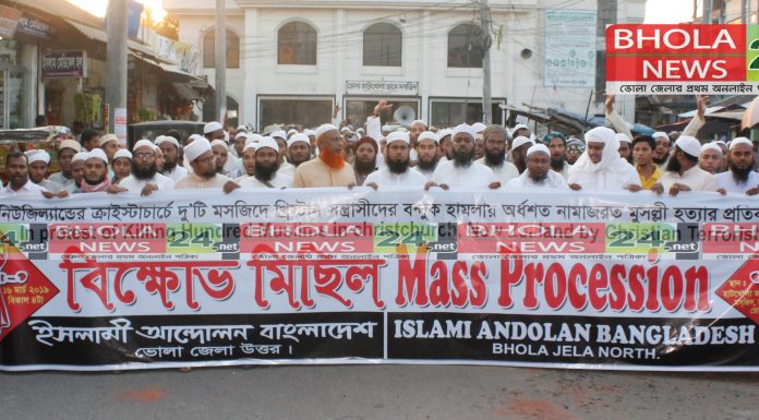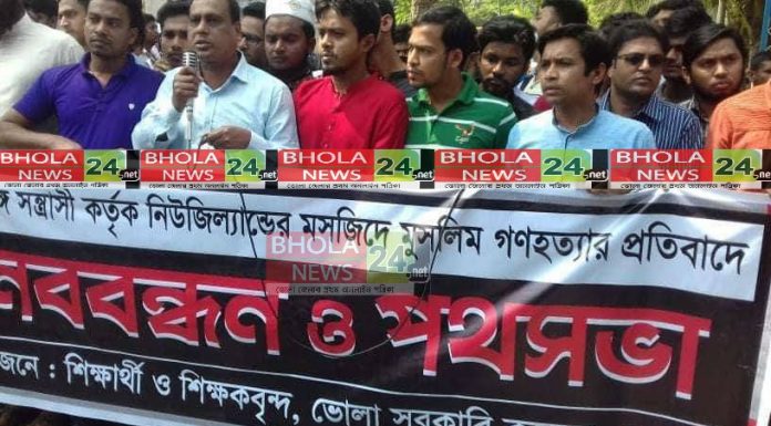 নিউজিল্যান্ডে মসজিদে খ্রিস্টান জঙ্গি হামলার প্রতিবাদে ভোলায় ইসলামী আন্দোলনের বিক্ষোভ