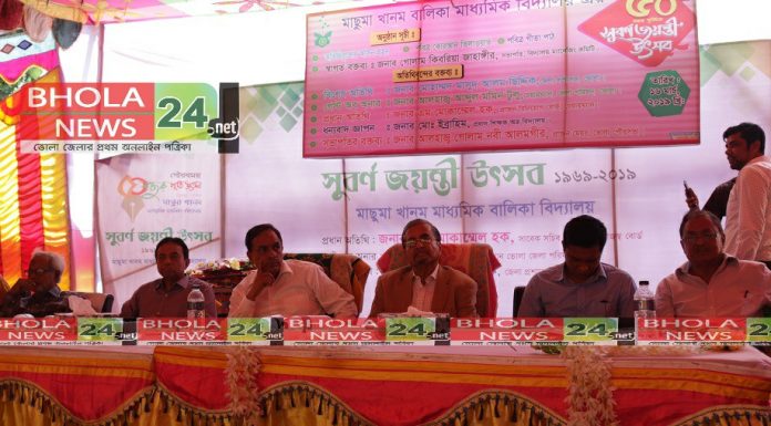 ইমতিয়াজুর রহমান,ভোলা নিউজ২৪ডটনেট ॥দ্বীপ জেলা ভোলার ঐতিহ্যবাহী বিদ্যাপিঠ মাছুমা খানম বালিকা বিদ্যালয়ের ৫০ বছর পূর্তিতে সুবর্ণ জয়ন্তী উৎসব নানা আয়োজনে মুখর পরিবেশে উদযাপিত হয়েছে।শনিবার (১৬মার্চ) সকালে ওই বিদ্যালয়ের মাঠে নানা আয়োজনের মধ্য দিয়ে এ জয়ন্তী উৎসব অনুষ্ঠিত হয়।