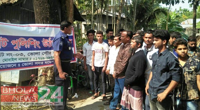 ইমতিয়াজুর রহমান।। ভোলা নিউজ ২৪ ডট নেটঃপুলিশই জনতা – জনতাই পুলিশ” এ প্রতিপাদ্য বিষয়কে সামনে রেখে ভোলা পৌরসভার ৩নং ওয়ার্ডে, ভদ্রপাড়ায় সন্ত্রাস,চাঁদাবাজ,মাদক,ইভটিজিং,যৌতুক, বাল্যবিবাহ এবং সাইবারক্রাইম প্রতিরোধে বিট পুলিশিং সভা অনুষ্ঠিত হয়।