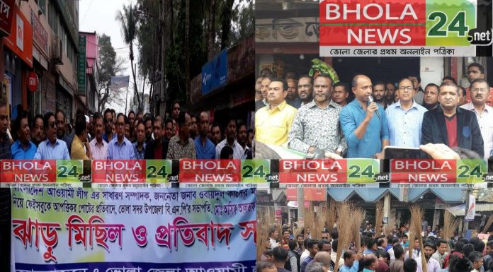 রাকিব উদ্দিন অমি।। বাংলাদেশ আওয়ামী লীগের সাধারণ সম্পাদক ও সড়ক পরিবহন ও সেতুমন্ত্রী ওবায়দুল কাদেরকে নিয়ে ভোলা সদর উপজেলা বিএনপির আহবায়ক আসিফ আলতাফের কু-রুচিপূর্ণ ফেসবুকে স্টাট্যাস দেয়ায় এর প্রতিবাদে জেলা আওয়ামী লীগের ঝাঁড়–মিছিল ও প্রতিবাদ সভা।