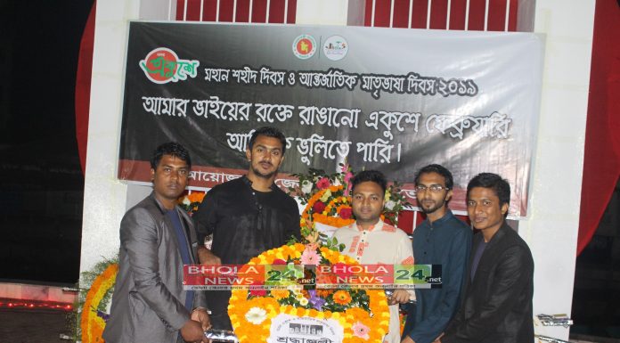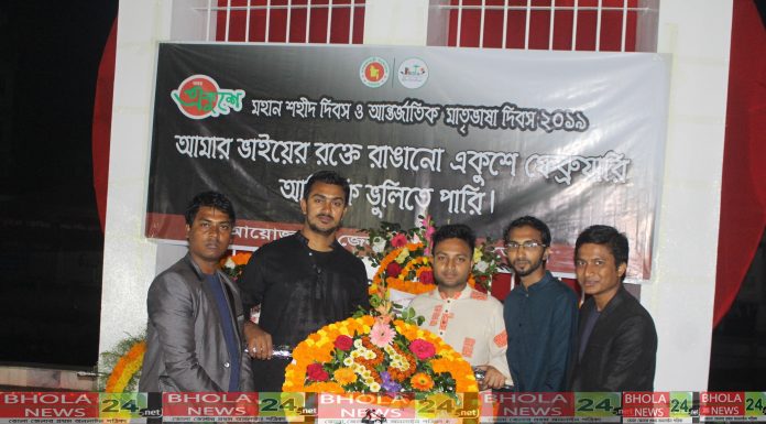 স্টাফ রিপোর্টাার,ভোলা নিউজ২৪ডটনেট ।। ভোলায় সরকারী স্কুলের মাঠে একুশের প্রথম প্রহরেই শহীদদের ফুলে দিয়ে স্বরন করলো ভোলার প্রথম সামাজিক সংগঠন হেল্প এন্ড কেয়ার । ভাষা শহীদদের শ্রদ্ধা নিবেদন করতে ভোলার কেন্দ্রীয় শহীদ মিনারে ভাষা শহীদদের শ্রদ্ধায় পুষ্পার্ঘ্য অর্পণ করে হেল্প এন্ড কেয়ার সামাজিক সংগঠনের নেতৃবিন্দ।