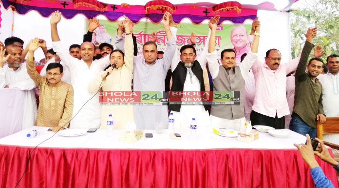 অমি আহমেদ,আদিল হোসেন তপু ,ভোলা নিউজ২৪ডটনেট॥ভোলার সদর উপজেলার রাজাপুর ইউনিয়নে আসন্ন ৬ নং ওয়ার্ডে পূর্ন নির্বাচন কে সামনে রেখে নির্বাচনী জনসভা অনুষ্ঠিত হয়।