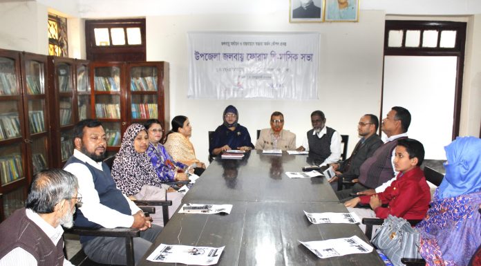 জলবায়ু পরিবর্তনের ক্ষতি মোকাবেলায় সচেতনতা ও টেকশই উন্নয়ন নিশ্চিতের লক্ষে জলবায়ু অর্থায়ন ও বাস্তবায়নে সচ্ছতা অর্জন কৌশল প্রকল্পের ভোলা সদর উপজেলা জলবায়ু ফোরামের দ্বি-মাসিক সভা অনুষ্ঠিত হয়েছে। মঙ্গলবার বিকেলে ভোলা মুসলিম ইনিস্টিটিউট পাবলিক লাইব্রেরিতে ভোলা সদর উপজেলা জলবায়ু ফোরামের সভাপতি সাংবাদিক মোকাম্মেল হক মিলনের সভাপতিত্বে বক্তব্য রাখেন সদর উপজেলা জলবায়ু ফোরামের সহ সভাপতি এ্যাড. আলহাজ্ব...
