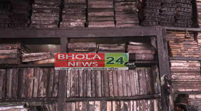 রাকিব উদ্দিন অমি ,ভোলা নিউজ২৪ডটনেট ।। ভোলার চরফ্যাসন পৌরশহরের জনতা রোডে ভয়াবহ অগ্নিকাণ্ডের ঘটনা ঘটে। এতে প্রায় ২০টি ব্যবসা প্রতিষ্ঠান সম্পূর্ণ পুড়ে ছাই হয়ে যায় কিন্তুু অক্ষত ছিল কোরআন শরীফ।