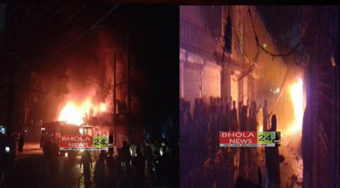 চরফ্যাশন প্রতিনিধি,ভোলা নিউজ২৪ডটনেট।। ভোলার চরফ্যাসন পৌরশহরের জনতা রোডে ভয়াবহ অগ্নিকাণ্ডের ঘটনা ঘটেছে। এতে প্রায় ২০টি ব্যবসা প্রতিষ্ঠান সম্পূর্ণ পুড়ে ছাই হয়ে গেছে। ব্যবসায়ীদের ধারণা অগ্নিকাণ্ডে প্রায় তিন কোটি টাকার ক্ষতি হয়েছে।