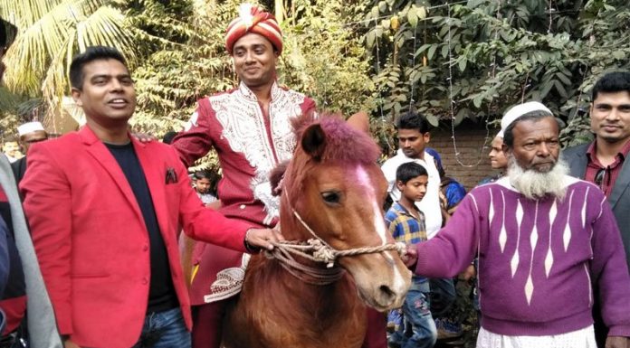 ভোলা নিউজ ২৪ ডটনেট।। ঘোড়ার পিঠে ও পালকীতে চড়ে বিয়ে করলেন পুলিশ অফিসার আশিকুর রহমান আশিক। গতকাল শনিবার নড়াইলের লোহাগড়ার রাজুপুর গ্রামে এ বিয়ে সম্পন্ন হয়।