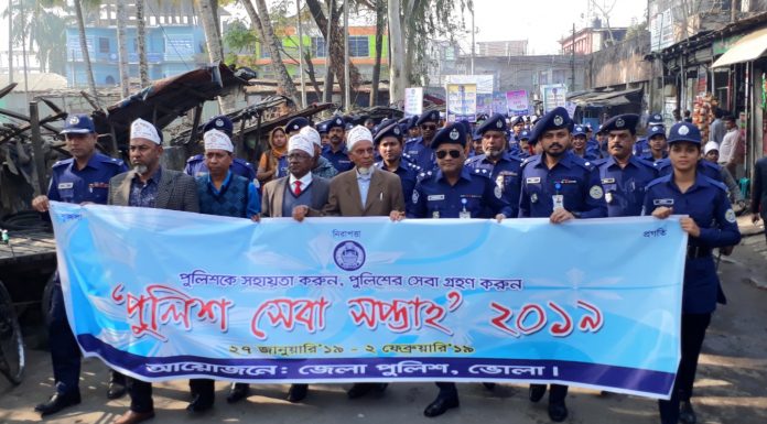 স্টাফ রিপোর্টার,ভোলা নিউজ ২৪ ডটনেট॥ ‘পুলিশকে সহায়তা করুন, পুলিশের সেবা গ্রহন করুন’ এই স্লোগানকে সামনে রেখে ভোলায় পুলিশ সেবা সপ্তাহ-২০১৯ ইং শুরু হয়েছে।
