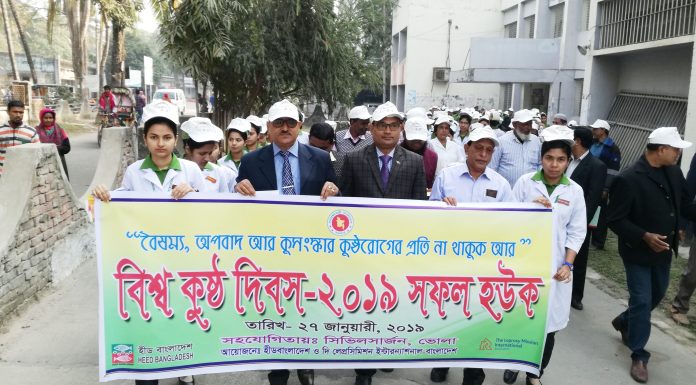 স্টাফ রিপোর্টার,ভোলা নিউজ ২৪ ডটনেট॥ ‘বৈষম্য, অপবাদ আর কুসংস্কার কুষ্ঠরোগের প্রতি না থাকুক আর ’এই প্রতিপাদ্যকে সামনে রেখে ভোলায় বিশ্ব কুষ্ঠ দিবস উপলক্ষে র্যালি ও আলোচনা সভা অনুষ্ঠিত হয়। রবিবার (২৭ জানুয়ারি) হীড বাংলাদেশ ও দি লেপ্রসিমিশন ইন্টারন্যাশনাল বাংলাদেশ এর আয়োজনে ও সিভিল সার্জেন ভোলা এর সহযোগিতায় সকালে সিভিল সার্জেন কার্যলয় থেকে বনার্ঢ্য একটি র্যালি বের হয়ে শহরের প্রধান...