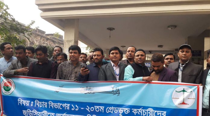 বাংলাদেশ জুডিসিয়ারী সহায়ক কর্মচারী পরিষদের ২১ সদস্য বিশিষ্ট কেন্দ্রীয় আহবায়ক কমিটি গঠন করা হয়েছে।এ উপলক্ষে ৬৪ জেলায় কর্মচারীদের নিয়ে এক সভা অনুষ্ঠিত হয়েছে। শুক্রবার ২৫ জানু/ ১৯ খ্রিঃ সকাল ১০ ঘটিকায় জেলা ও দায়রা জজ আদালত ঢাকা এর কেন্টিন রুমে এই সভা অনুষ্ঠিত হয়। সভায় জেলা জজ ঢাকা এর নাজির জনাব তরিকুল আলম এর সভাপতিত্বে প্রধান অতিথি...
