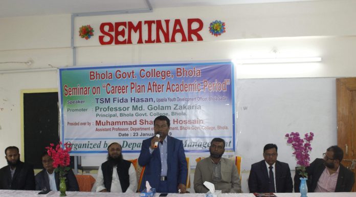 ভোলা নিউজ ২৪ ডট নেট : ভোলা সরকারি কলেজের ব্যস্থাপনা বিভাগের উদ্যেগে (শিক্ষা জীবনশেষে কর্মজীবনের পরিকল্পনা) শীর্ষক সেমিনার ও অনার্স ৪র্থ বর্ষের বিদায়ী শিক্ষার্থীদেও লাস্ট ক্লাস ওর্যাগ ডে অনুষ্ঠিত হয়েছে।