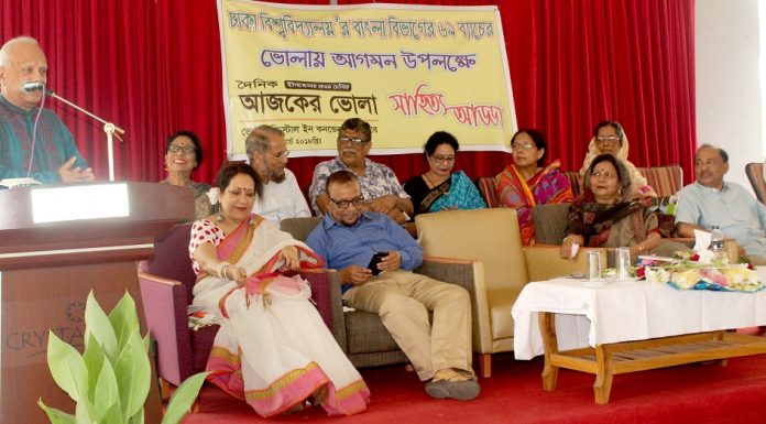 এম শাহরিয়ার জিলন, ভোলা:ভোলা নিউজ ২৪ ডটনেট :বাংলা সাহিত্যকে এগিয়ে নেওয়ার জন্য ‘সাহিত্য, কবিতা পাঠ, আবৃতি, সংগীত পরিবেশন ও আলোচনা সভার মধ্যদিয়ে দৈনিক আজকের ভোলার আয়োজনে জমজমাট ‘সাহিত্য আড্ডা’ অনুষ্ঠিত হয়েছে। বৃহস্পতিবার (১৫ মার্চ) সকালে ভোলা শহরের ক্রিস্টাল ইন কনভেনশন সেন্টারে ঢাকা বিশ্ববিদ্যালয়ের বাংলা বিভাগের ৬৯তম ব্যাচের ভোলায় আগমন উপলক্ষে এই সাহিত্য আড্ডা অনুষ্ঠিত হয়।