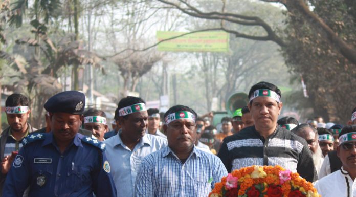 রাত ১২টা বাজার আগেই শত শত মানুষ ফুল নিয়ে এসে জরো হন সহীদ মিনারে। ভোলার জেলা...