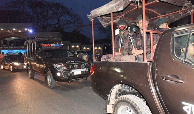 বাসস: রাজধানীসহ সারা দেশে ৪৩ প্লাটুন বর্ডার গার্ড বাংলাদেশ (বিজিবি) মোতায়েন করা হয়েছে। আজ বুধবার সন্ধ্যা ৬টা থেকে রাজধানী ঢাকায় ২০ প্লাটুন বিজিবি সদস্য টহল দিচ্ছে। এ ছাড়া বিভিন্ন জেলা শহরে ২৩ প্লাটুন বিজিবি মোতায়েন করা হয়েছে। অপরদিকে ভোলাতেও আইনশৃংখলা বাহিনী বেশ তৎপর রয়েছে। বিকাল থেকে শহরে আইনশৃংখলারক্ষাকারী সদস্যরা গাড়ী ও মটরসাইকেল নিয়ে রাস্তা পদক্ষিন করেছে।
