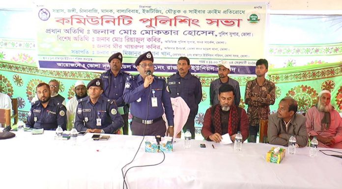 আদিল হোসেন তপু:ভোলা নিউজ ২৪ ডটনেট :“পুলিশি জনতা- জনতাই পুলিশ ” এই প্রতিপাদ্য বিষয়কে সামনে রেখে ভোলার রাজপুর ইউনিয়নে সন্ত্রাস,জঙ্গীবাদ ,চাদাঁবাজি,মাদক,বাল্য বিবাহ,ইভটিজিং,যৌতুকও সাইবার ক্রাইম প্রতিরোধে কমিউনিটি পুলিশিং সভা অনুষ্ঠিত হয়।