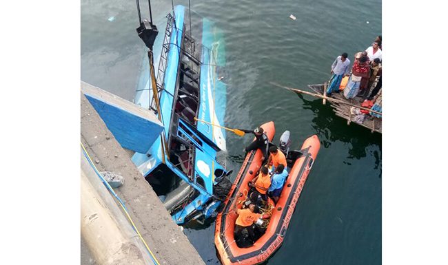 স্থানীয় ভৈরব নদীর গোবরা খালের ভেতর পানিতে ডুবে থাকা দুর্ঘটনাগ্রস্ত বাসটিকে ওপরে তুলে আনার পর থেকেই বাড়ছে মৃতের সংখ্যা।