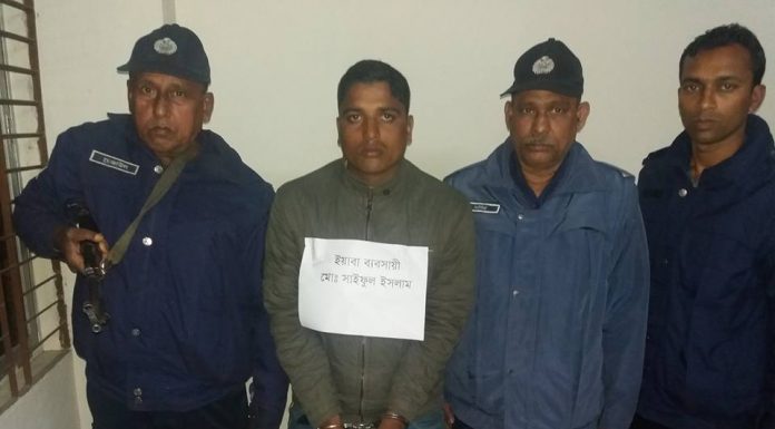শনিবার(২৭জানুয়ারী) বিকেলে শশীভূষন থানা পুলিশ তাকে আটক করে। সাইফুল ইসলাম জিন্নাগর ইউনিয়নের ৮নং ওয়ার্ডের উত্তর চরমাদ্রাজ এলাকার রতন জমাদ্দারের ছেলে। শশীভূষন থানার অফিসার ইনচার্জ(ওসি) হানিফ সিকদার এ তথ্য নিশ্চিত করে জানান,তার বিরুদ্ধে মাদকদ্রব্য নিয়ন্ত্রন আইনে মামলা দায়ের করা হয়েছে। রোববার সকালে তাকে...