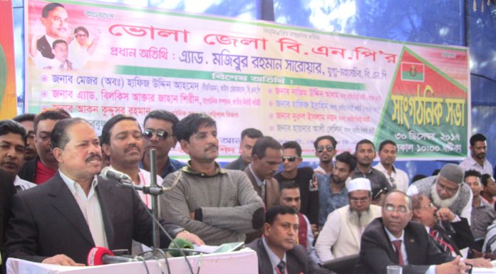 আরিফ উদ্দিন রনি,ভোলা নিউজ ২৪ ডটনেট: বিএনপির চেয়ারপারসন বেগম খালেদা জিয়াকে জেলে রেখে কোন নির্বাচন নয়। এছাড়া আগামী জাতীয় সংসদ নিবার্চন শেখ হাসিনার অধিনে নয় বলে মন্তব্য করেছেন বিএনপির যুগ্ন মহাসচিব এড্যাভোকেট মজিবুর রহমান সরোয়ার।