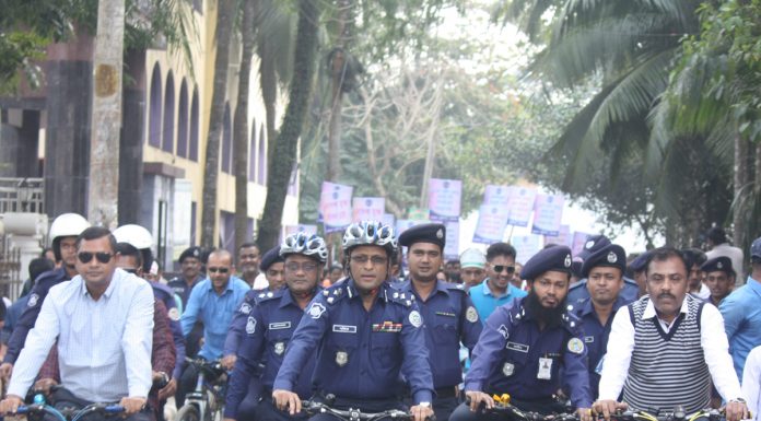 ইয়ামিন,ভোলা নিউজ ২৪ ডটনেট: ভোলায় মাদক বিরোধী ব্যতিক্রমধর্মী প্রচারনার অংশ হিসেবে বর্নাঢ্য সাইকেল র্যালি অনুষ্ঠিত হয়েছে। আজ ১৩ ডিসেম্বর বেলা ১২টায় ভোলা শহরের বাংলাস্কুল মাঠ থেকে বরিশাল রেঞ্জ পুলিশের ডিআইজি মো: শফিকুল ইসলাম বিপিএম এর নেতৃত্বে এই সাকেল র্যালি অনুষ্ঠিত হয়।