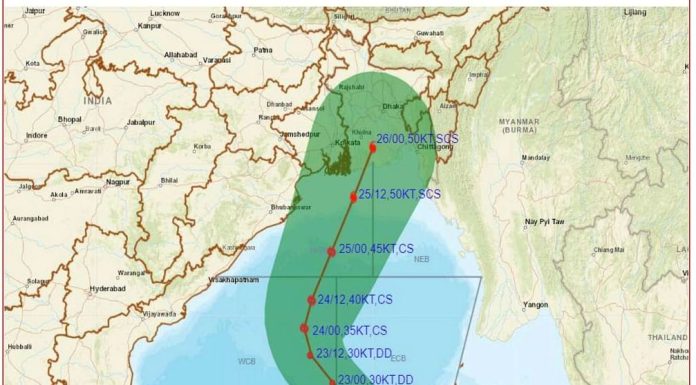 তবে ভারতের আবহাওয়া অধিদপ্তর বলছে, ঘূর্ণিঝড়টির গতিমুখ সরাসরি বরিশালের দিকে।